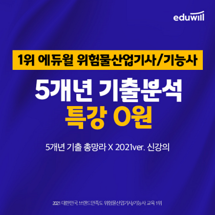 에듀윌이 선보인 ‘5개년 기출분석특강’은 위험물산업기사·기능사 5개년 기출을 총망라한 2021년 버전 신강의다. 최신 출제 경향을 반영한 핵심문제 위주로 학습량을 압축한 것이 특징이다.