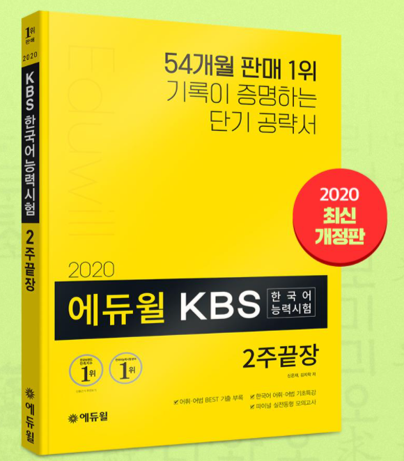 [시민일보 = 여영준 기자] 종합교육기업 에듀윌(대표 박명규)이 발간한 ‘2020 에듀윌 KBS한국어능력시험 2주끝장’ 수험서가 온라인서점 예스24에서 베스트셀러 1위를 차지했다.