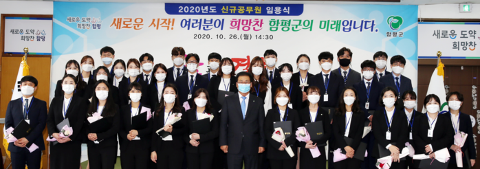 신규공무원 임용식은 이날 군청 대회의실에서 임용장 수여, 공무원증 수여, 신규공무원 선서 등의 순으로 진행됐다.