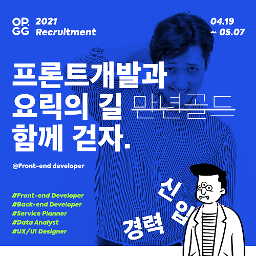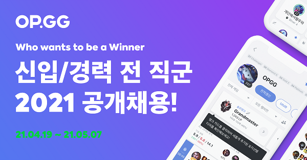 [시민일보 = 이승준 기자] 글로벌 게임 데이터 플랫폼 오피지지(OP.GG)가 2021년 상반기 백엔드개발(PHP), 프론트엔드개발, 데이터분석, 시스템엔지니어 등 전 직군 공개채용을 시행한다고 밝혔다.