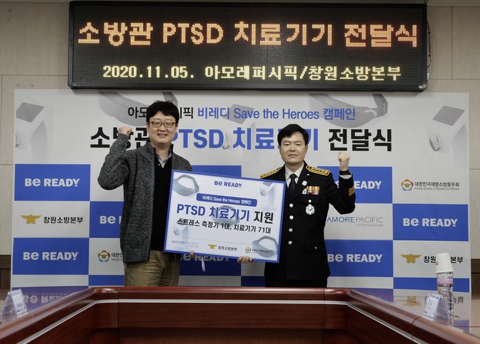 [시민일보 = 홍덕표 기자] 아모레퍼시픽의 Z세대 남성 메이크업 전문 브랜드 비레디(BeREADY)가 우리 사회의 숨은 영웅인 소방관들을 위해 최근 정신건강 진단 장비 1대와 치유 장비 71대를 기부했다.