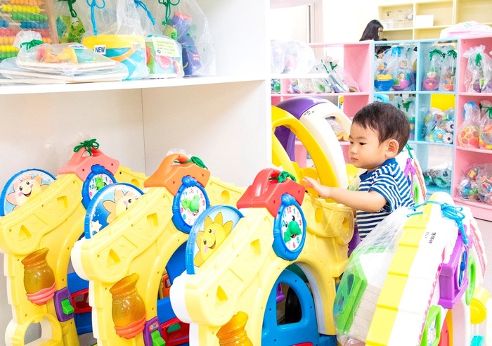 | ▲ 지난 7월30일 꿈나무종합타운 내 '아이노리 장난감나라'를 찾은 한 아이가 장난감을 고르고 있다. (사진제공=용산구청) |
