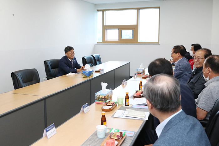 | ▲ 이용균 의장(왼쪽)이 보훈단체 대표들과 이야기를 나누고 있다. (사진제공=강북구의회) |
