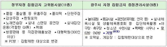 광주시는 이 업종들에 대해 오는 20일까지 집합금지 행정명령을 내렸다.