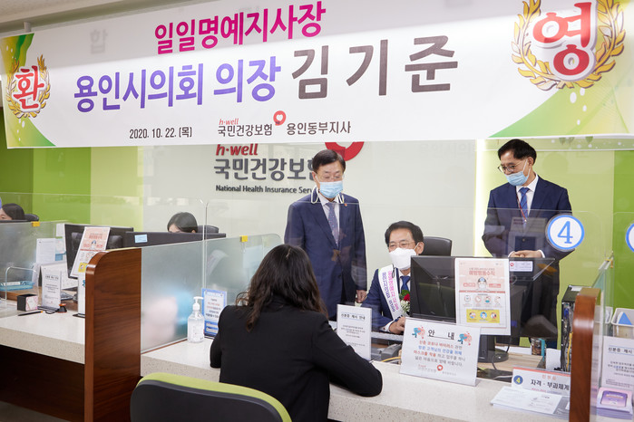 이날 김 의장은 황순창 국민건강보험 용인동부지사장으로부터 일일 명예 지사장 위촉장을 받고, 업무 내용에 대한 설명을 들은 후 결재를 하는 등 체험을 했다.
