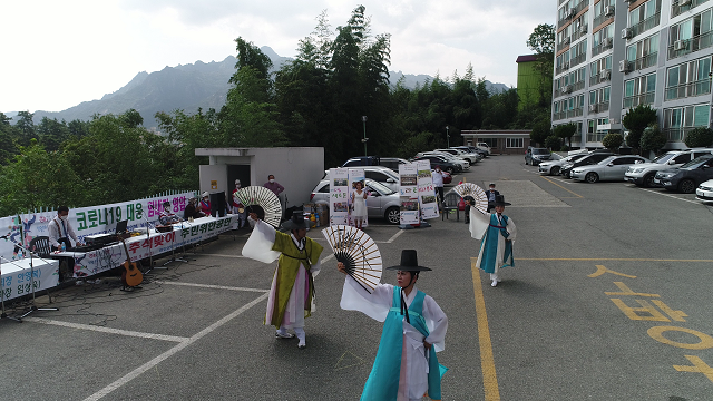 | ▲ 영암문화원이 코로나 19로 인한 주민들의 피로감을 덜어주고, 영암군생활문화동호회 회원들의 발표 기회를 제공하기 위해 지난 26일 영암읍 소재 영신 아파트 주차장을 무대로 진행한 비대면 특별공연 모습 / 영암군 제공 |