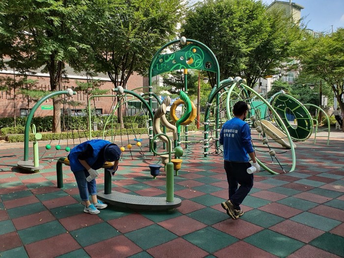 방역대상은 ▲공동주택 내 놀이시설 421곳 ▲도시공원 내 놀이시설 86개소를 포함한 총 507곳이며, 항균소독제를 묻힌 천으로 어린이들의 손이 닿기 쉬운 미끄럼틀, 그네, 정글짐 등 놀이기구와 부대시설의 표면을 일일이 닦아내는 방법으로 진행한다.