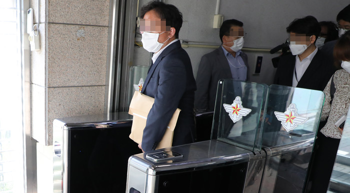 ▲ 추미애 법무부 장관 아들 서 모씨의 특혜 휴가 의혹을 수사하고 있는 검찰 관계자들이 15일 오후 용산 국방부 민원실에서 나오고 있다. 이들은 민원실에서 나와 국방부 별관으로 이동했다. (사진제공=연합뉴스) |