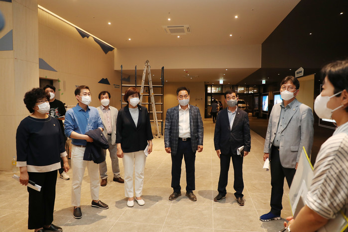 파라스파라 신축 공사 현장을 방문한 복지건설위원들은 관계자로부터 공사 진행 상황 및 개관 후 운영계획에 대한 전반적인 보고를 받은 후 객실, 옥상 및 부대시설 등을 확인했다.