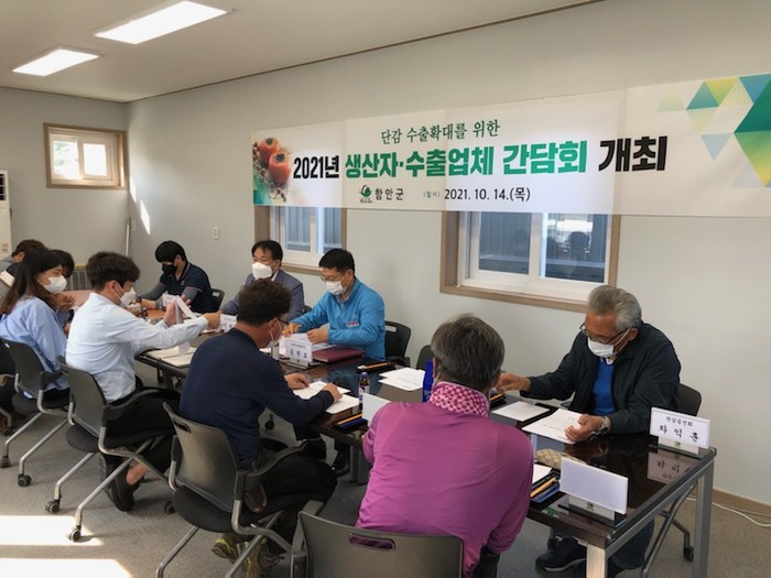 함안군은 14일 칠북단감탑프루트영농조합법인 회의실에서 지역농협, 수출업체, 생산자단체 대표 등이 참석한 가운데 ‘단감’ 수출확대를 위한 간담회를 개최했다고 밝혔다.