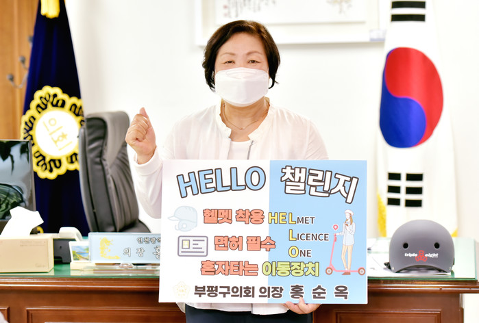 차준택 부평구청장의 지목을 받은 홍순옥 의장은 2일, 자신의 페이스북을 통해 개인형 이동장치 ‘HELLO 릴레이 챌린지’에 참여한다고 전했다.
