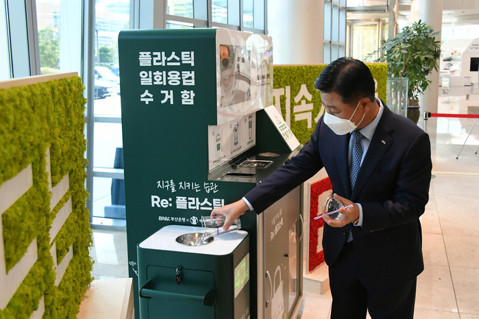 부산은행은 지난 28일 본점 1층에 특수 제작된 플라스틱 컵 수거함을 설치 완료했으며, 벡스코, 영화의전당, 대학교 등 유동인구가 많은 장소 9곳에도 순차적으로 설치할 예정이다.