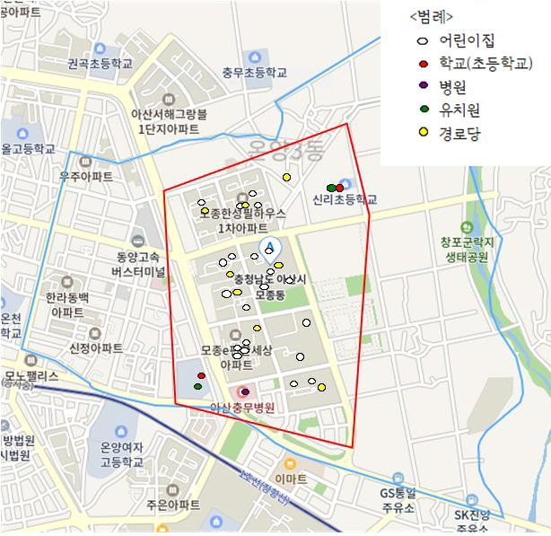 | ▲ 모종동 미세먼지 집중관리구역 위치도. (사진제공=아산시청) |