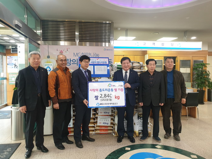 서울 구로구 오류2동 새마을금고가 ‘사랑의 좀도리 운동’으로 모금한 백미 142포(20kg)를 저소득 가구를 위해 사용해 달라며 오류2동 주민센터에 기탁했다. 사진은 성품 기탁 후 기념촬영을 하고 있는 관계자들의 모습. (사진제공=구로구청)