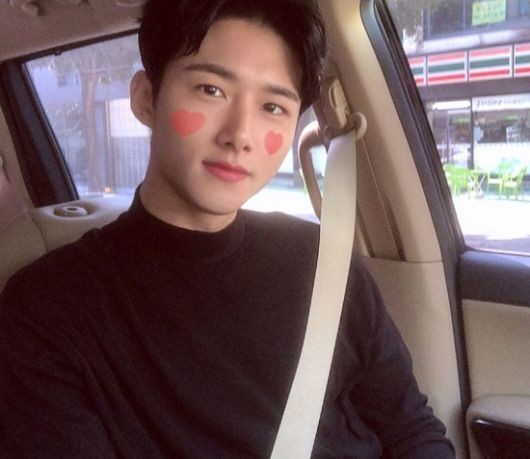사진에는 볼에 하트 스티커를 붙인채 카메라를 응시하고 있는 서지훈의 모습이 담겨있다.