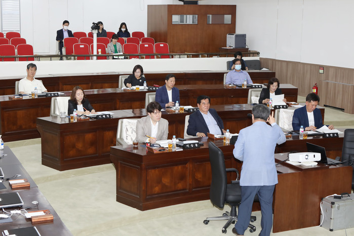 강사로 초빙된 제윤의정 지방의정연구소 최민수 원장은 행정사무감사 준비사항과 전략기법 및 타 의회의 감사 지적사례 등을 소개하며 실무위주의 교육을 진행했다 . 강의 후에도 의원들의 질의답변 시간이 이어졌다.
