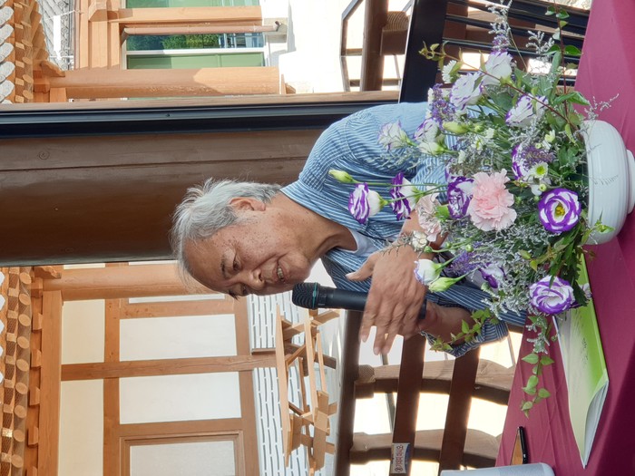 | ▲ 땅끝순례문학관에서 황지우 시인이 발언하고 있다.(사진제공=해남군청) |