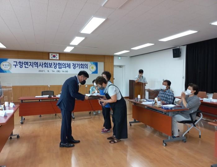충남 홍성군 구항면은 최근 지역사회보장협의체 제4기 출범식을 열고 회의를 개최했다. 이번 회의에서는 제4기 위원에 대한 위촉장 수여와 함께 올해 사업 추진 현황보고 및 현안사항에 대해 협의했다. 사진은 제4기 위원에게 위촉장을 수여하고 있는 모습.(사진제공=홍성군청)