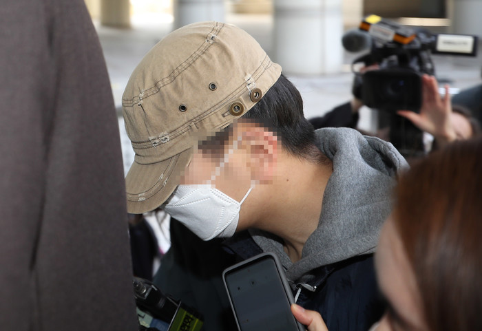 텔레그램 대화방 '박사방'에서 성 착취물을 유포한 조주빈의 공범 A씨가 9일 오전 서초구 서울중앙지법에서 열린 구속 전 피의자 심문(영장실질심사)에 출석하고 있다. A씨는 '부따'라는 대화명을 사용하며 박사방 참여자들을 모집·관리하고, 박사방 등을 통해 얻은 범죄수익금을 조씨에게 전달한 혐의를 받고 있다.
