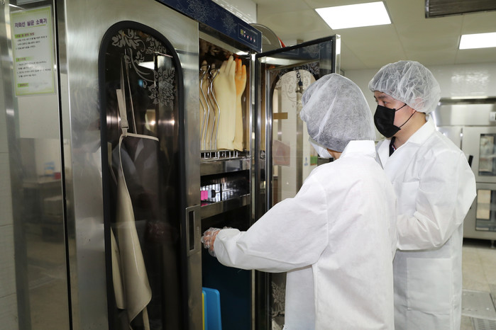 서울시 관계자들이 7일 오전 서울 성동구의 한 유치원 급식소에서 긴급 위생점검을 하고 있다. 서울시는 여름철을 맞아 이달 말까지 식중독 취약시설인 유치원 566곳과 어린이집 2138곳의 아동 급식 시설을 점검할 예정이다.
