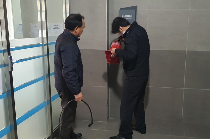 인천 남동소방서는 다가오는 제21대 국회의원 선거와 관련해 오는 25일까지 지역내 투·개표소 107곳을 대상으로 소방안전점검을 하고 있다. 이번 점검은 소방시설 안전관리 실태점검, 비상구 안전 관리 등으로 진행된다. 사진은 소방시설을 점검하는 모습. (사진제공=남동소방서)