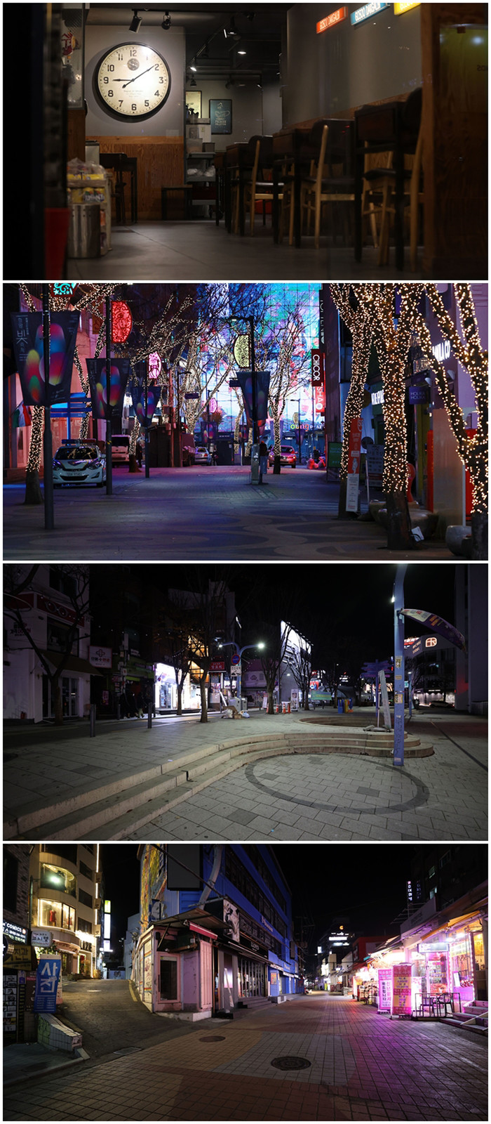 코로나19 확산으로 수도권 사회적 거리두기 2.5단계 격상을 하루 앞둔 지난 7일 오후 서울 주요 번화가 거리가 텅 비어있다. 위에서부터 서울 강남구 먹자골목의 한 식당, 중구 명동 거리, 마포구 홍대거리 모습.