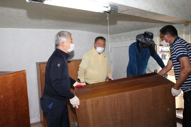 9일에는 화산면 석전마을에서 홀로 사시는 어르신의 침수된 주택 가재도구, 장판 정리, 침구류 세탁 등 현장 활동을 펼쳤고, 10일(토)에는 삼산면 산림마을 도로변에 떠밀려 내려온 돌덩이와 배수구를 막고 있었던 토사 정비 등 복구 활동에 구슬땀을 흘렸다.