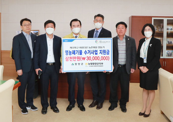함양군은 농협함양군지부 노기창 지부장 등이 3일 군수실을 방문하여 영농폐비닐 수거사업 지원금으로 3,000만원을 기탁했다고 밝혔다.