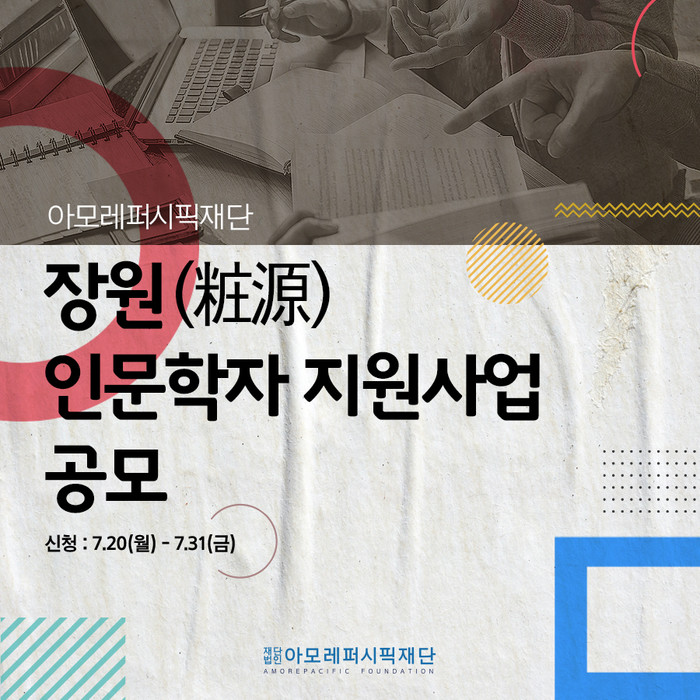 [시민일보 = 홍덕표 기자] 아모레퍼시픽재단은 인문학 분야 신진 연구자에게 연구비를 지원하는 '장원(粧源) 인문학자 지원사업' 참여자를 모집한다고 13일 밝혔다.