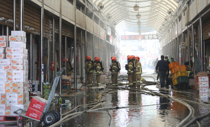 경찰과 소방당국은 상인들을 상대로 정확한 화재 원인과 피해 규모를 조사 중이다.