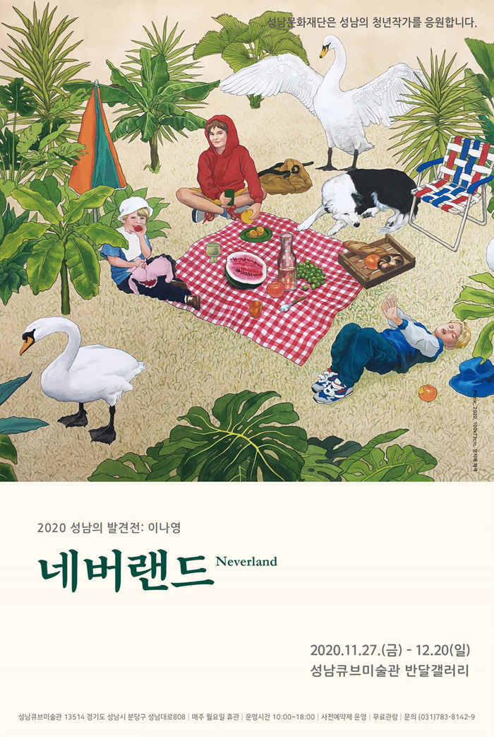 [성남=오왕석 기자] 성남문화재단(대표이사 노재천)은 성남의 역량 있는 젊은 작가를 소개하고 창작 활동을 지원하는 ‘2020 성남의 발견전’으로 ‘이나영: 네버랜드’ 전시를 11월 27일부터 오는 12월 20일까지 성남큐브미술관 반달갤러리에서 진행한다.