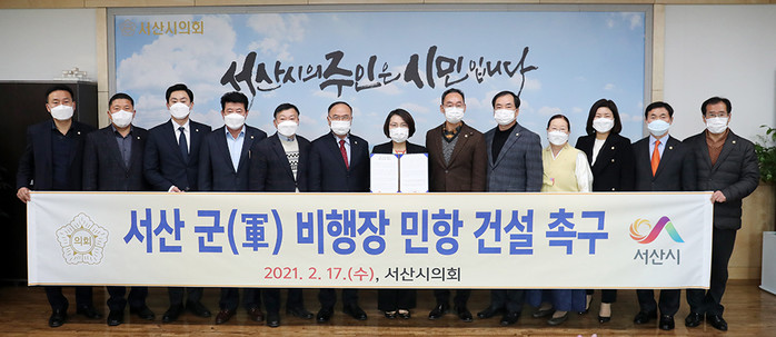 | ▲ 서산시의회는 지난 2월17일 태안군의회와 공동으로 서산 군 비행장 민항(서산공항) 건설 촉구 결의안을 채택했다. (사진제공=서산시의회) |