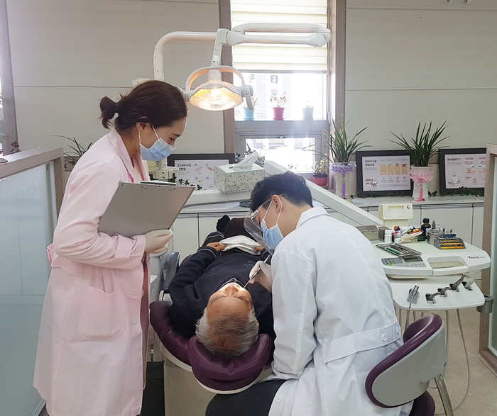 충남 서산시가 구강 건강상태가 취약한 저소득층 노인·장애인을 대상으로 의치(틀니)보철 지원 사업을 추진한다. 시는 의치(완전의치·부분의치)보철 시술과 함께 사후관리까지 지원한다. 사진은 최근 의치보철 신청자의 구강상태를 검진하는 모습. (사진제공=서산시청)