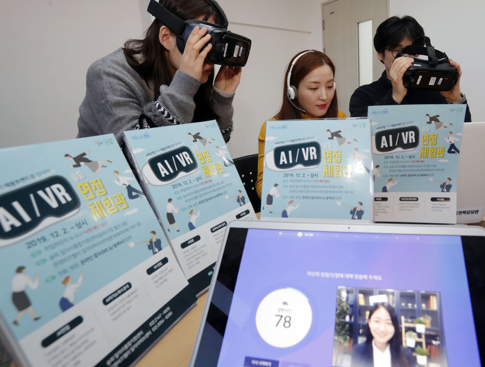| ▲ AI,VR 면접체험을 진행하고 있는 청년들. (사진제공=송파구청) |