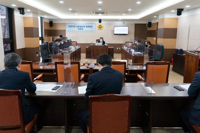 인천시의회 행정안전위원회가 최근 ‘인천지역 금융불평등 해결방안 토론회’를 열고 코로나19로 더욱 금융지원이 필요한 자영업자와 금융소외자 문제에 대한 해결 방안에 대해 토의했다. 사진은 토론회 진행 모습. (사진제공=인천시의회)