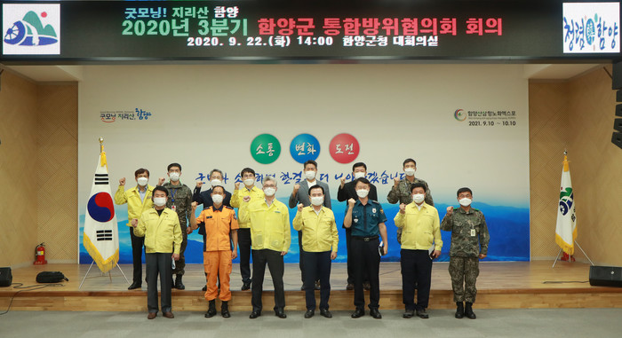 함양군 통합방위협의회(의장 서춘수 함양군수)는 22일 오후 2시 군청 대회의실에서 관내 주요 기관·단체장이 참석한 가운데 ‘2020년 3분기 함양군 통합방위협의회 회의’를 개최했다.