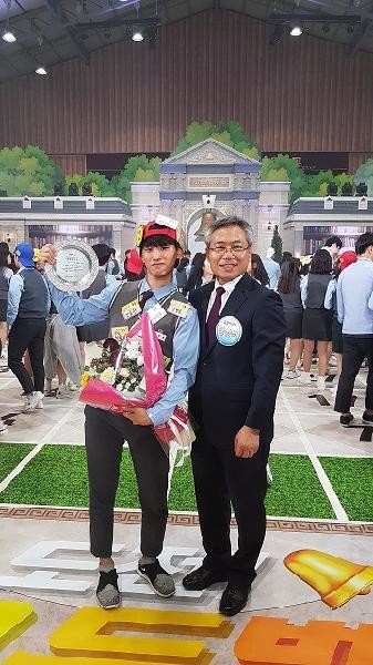 최후의 1인으로 남아 당당한 모습으로 골든벨을 울린 3학년 이재창 학생은 “철학책을 읽으며 골든벨을 준비했는데, 노력한 만큼 좋은 결과가 나와서 기분이 좋다.”라고 말하며 ‘앞으로 많은 사람을 도울 수 있는 토목공학자가 되고 싶다.’는 포부도 밝혔다.
