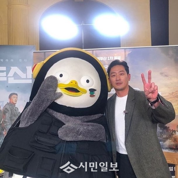 하정우의 소속사 워크하우스컴퍼니 공식 인스타그램에는 "톱스타 #펭수 와의 만남이 드디어 성사되었습니다 #하정우 배우와 펭수의 케미가 궁금하셨던 분들을 위한 오늘의 사진! 여러분들을 위해 들고왔어요 12월 19일 개봉을 앞둔 백두산 많은 성원과 사랑 부탁드립니다"라는 글과 함께 사진 한 장이 게재됐다.