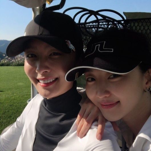 사진 속 장희진은 박정아와 함께 카메라를 바라보며 포즈를 취하고 있다.