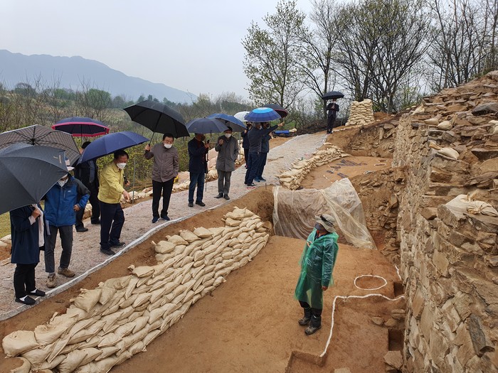 구인모 거창군수는 12일 최근 고고학계 관심이 쏠리고 있는 분산성 발굴조사 현장을 방문해 (재)경상문화재연구원으로부터 그간 발굴조사 성과를 듣고, 조사단을 격려했다.