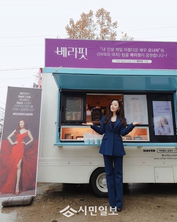 공개된 사진 속 오나라는 커피차 앞에서 포즈를 취하며 여신의 아우라를 드러내 감탄을 자아냈다.