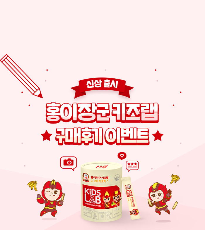 [시민일보 = 고수현 기자] KGC인삼공사가 어린이 장건강을 위한 맞춤형 유산균 ‘홍이장군 키즈랩 프로바이오틱스’ 구매후기 이벤트를 진행한다.