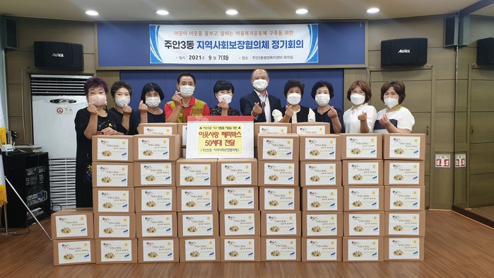 [인천=문찬식 기자] 인천 미추홀구 주안3동 지역사회보장협의체가 7일 명예사회복지공무원과 함께 홀몸노인, 한부모가정, 복지위기가구 등 저소득 취약계층 50가구에 '이웃사랑 해피박스'를 전달했다.