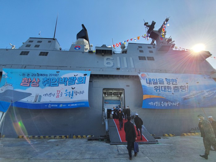 이번 함상 취업박람회는 취업 활동에 애로를 겪는 장병과 중소벤처기업의 구직.구인난을 해소하기 위해 대한민국해군, 중소벤처기업진흥공단, 창원시가 공동 주관하고 국방부, 중소벤처기업부, 고용노동부, 해양수산부, 국가보훈처, 국방전직교육원, 한국해양수산연수원, 한국선원복지고용센터 후원으로 80개 업체가 참가했다.
