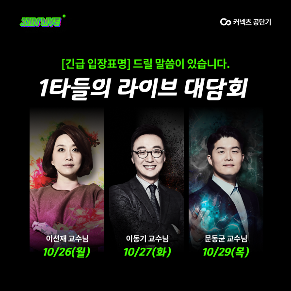 수험생들은 “단연 최고의 강사 이선재, 이동기, 문동균 선생님이 차례대로 출연하는 라이브 방송이라 사전 예약 후 손꼽아 기다리고 있다”, “내년 시험에서 불합격하지 않으려면 지금 이 시기가 중요한데 선생님들의 격려와 메시지가 수험 생활에 큰 힘이 될 것 같다” 등의 코멘트를 남기며 기대감을 표했다.