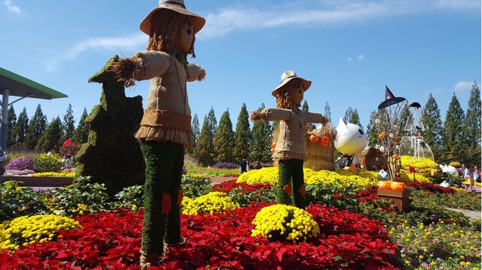 높고 푸른 가을 하늘을 배경으로 펼쳐지는 야외 정원은 그야말로 가을 꽃 세상이다.