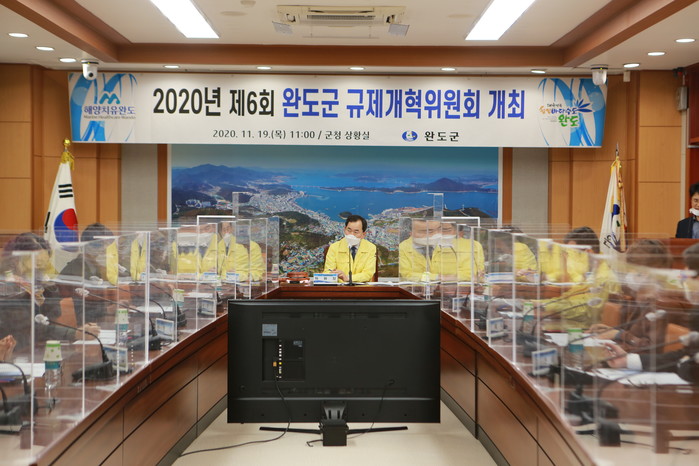 [완도=신흥권 기자] 전남 완도군은 최근 군청 상황실에서 군 규제개혁위원회 위원장인 봉진문 부군수를 비롯해 심의위원, 관계 공무원 등 15여명이 참석한 가운데 '2020년 제6회 규제개혁위원회'를 개최했다.