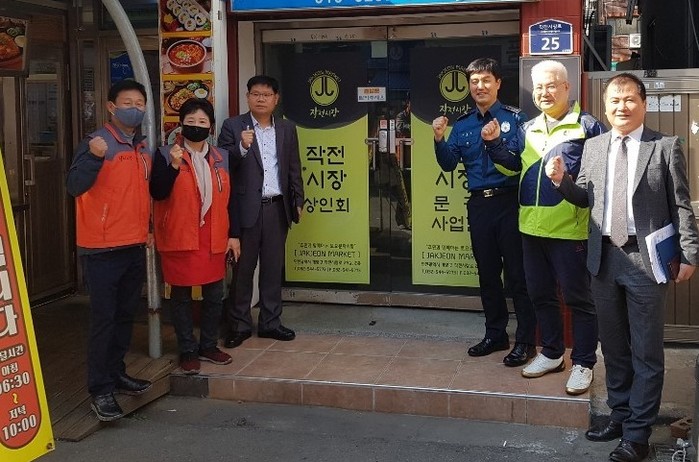 인천 계양경찰서는 코로나19 여파로 인해 침체된 지역경제 회복을 위해 최근 지역내 전통시장 3곳(계양산 전통시장, 계산시장, 작전시장) 상인회와 자매결연 협약을 체결했다. 사진은 작전시장 상인회와 협약 체결 후 함께 기념촬영을 하는 모습. (사진제공=계양경찰서)
