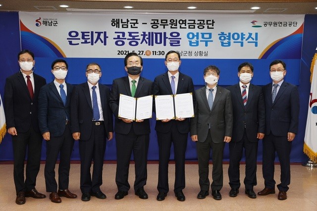 해남군과 공무원연금공단은 지난 27일 해남군청 상황실에서 은퇴자 공동체 마을 운영을 위한 업무협약을 체결했다.