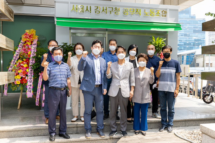 [시민일보 = 홍덕표 기자] 서울 강서구의회(의장 이의걸) 미래복지위원회가 최근 강서구청 가양동별관 1층에 위치한 '환경공무관 서울시 강서구청 공무직 노동조합 사무실 개소식'에 참석해 개소를 축하하고 관계자들을 격려했다.